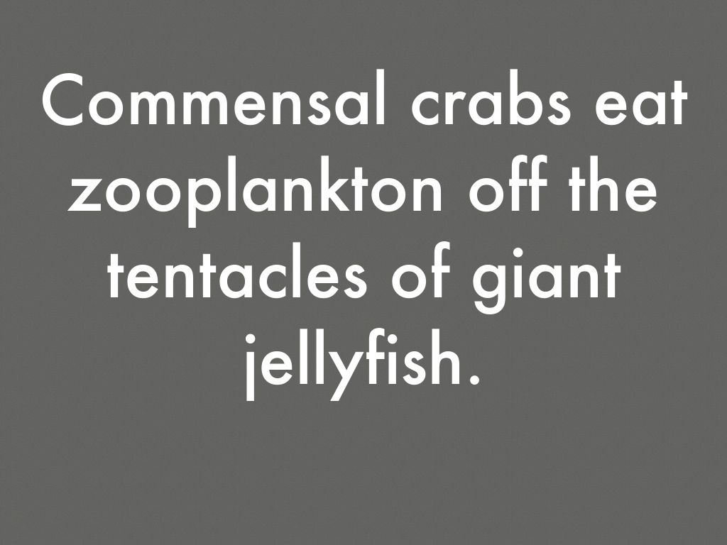 Commensal crabs eat zooplankton off the tentacles of giant jellyfish.