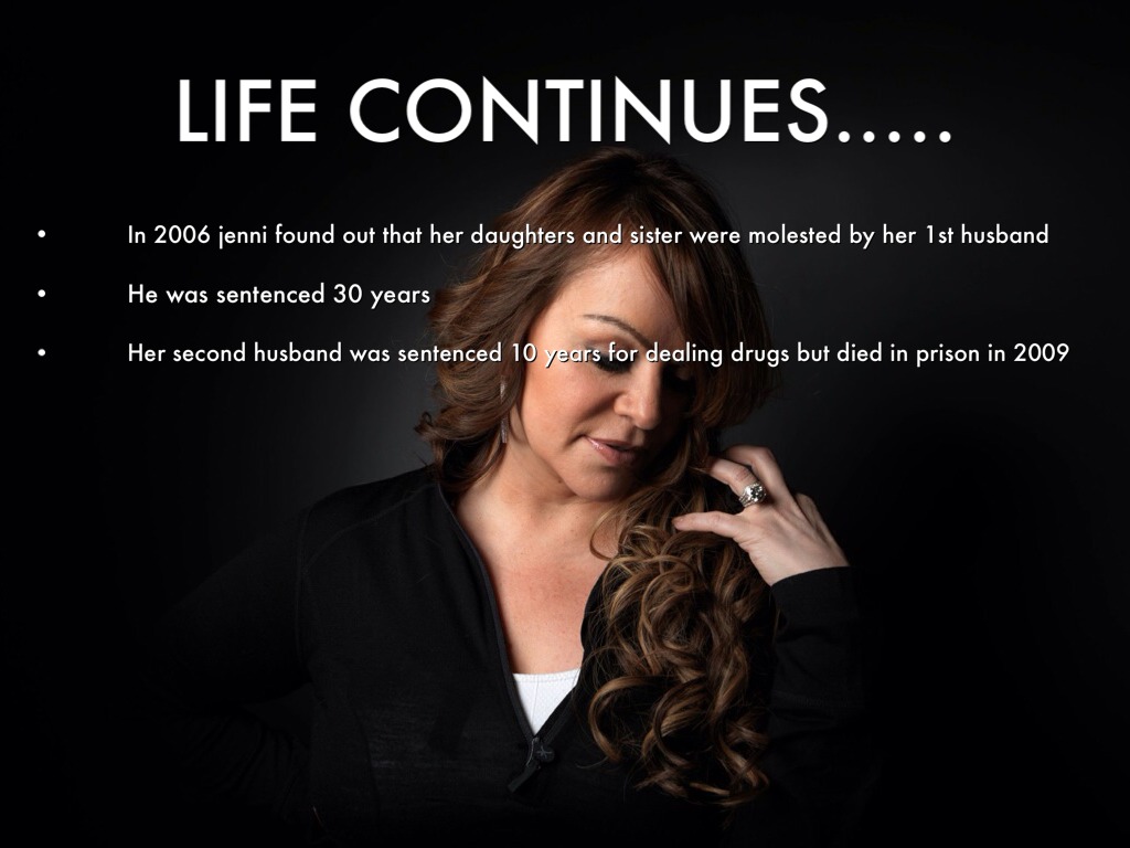 In 2006 jenni found out that her daughters and sister were molested by her 1st husband
