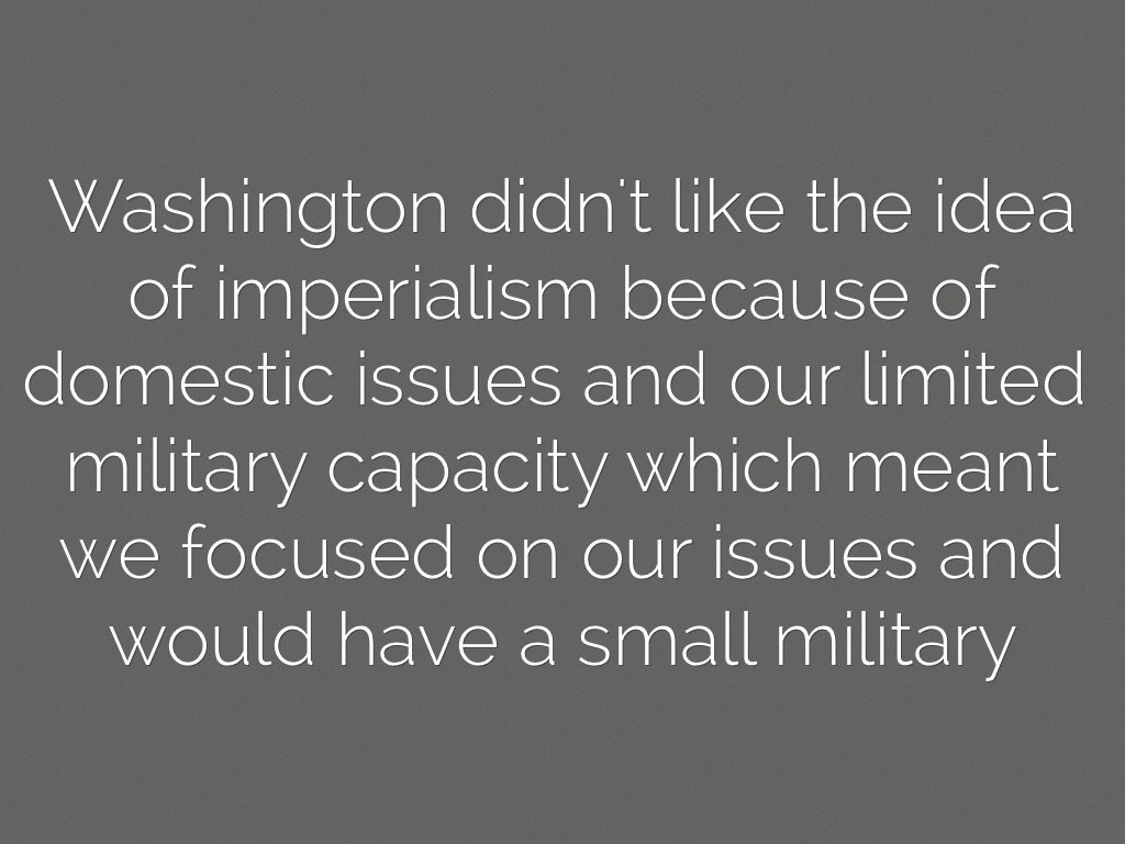 Washington didn't like the idea of imperialism because of domestic issues and our limited military capacity which meant we focused on our issues and would have a small military