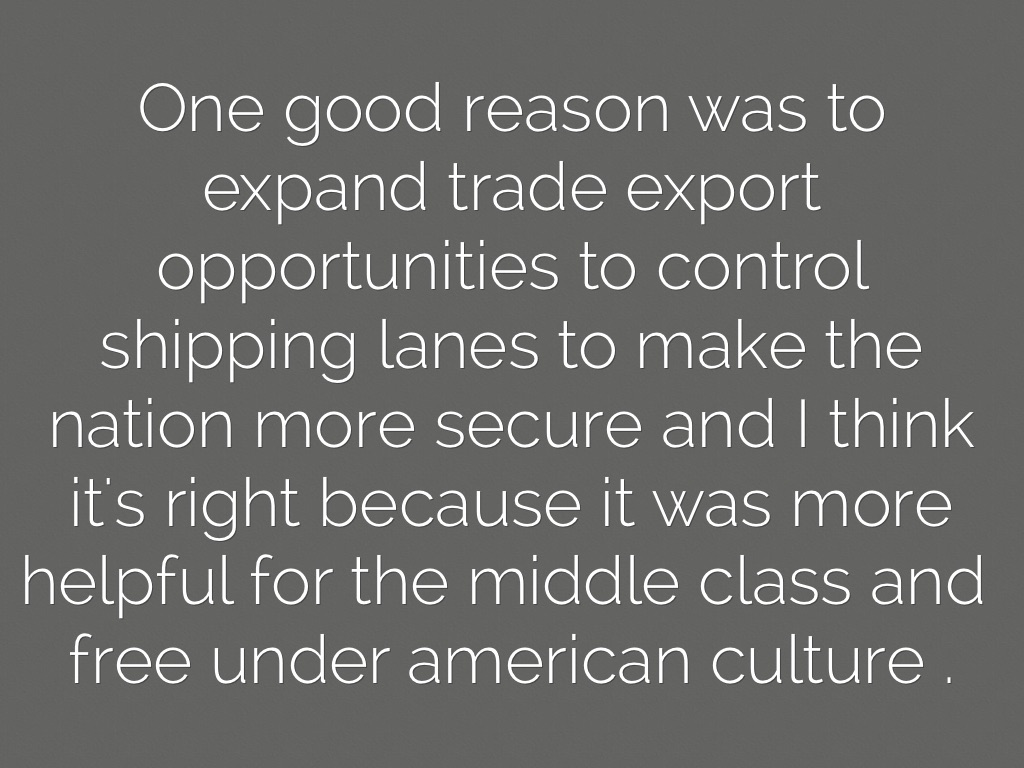 One good reason was to expand trade export opportunities to control shipping lanes to make the nation more secure and I think it's right because it was more helpful for the middle class and free under american culture .