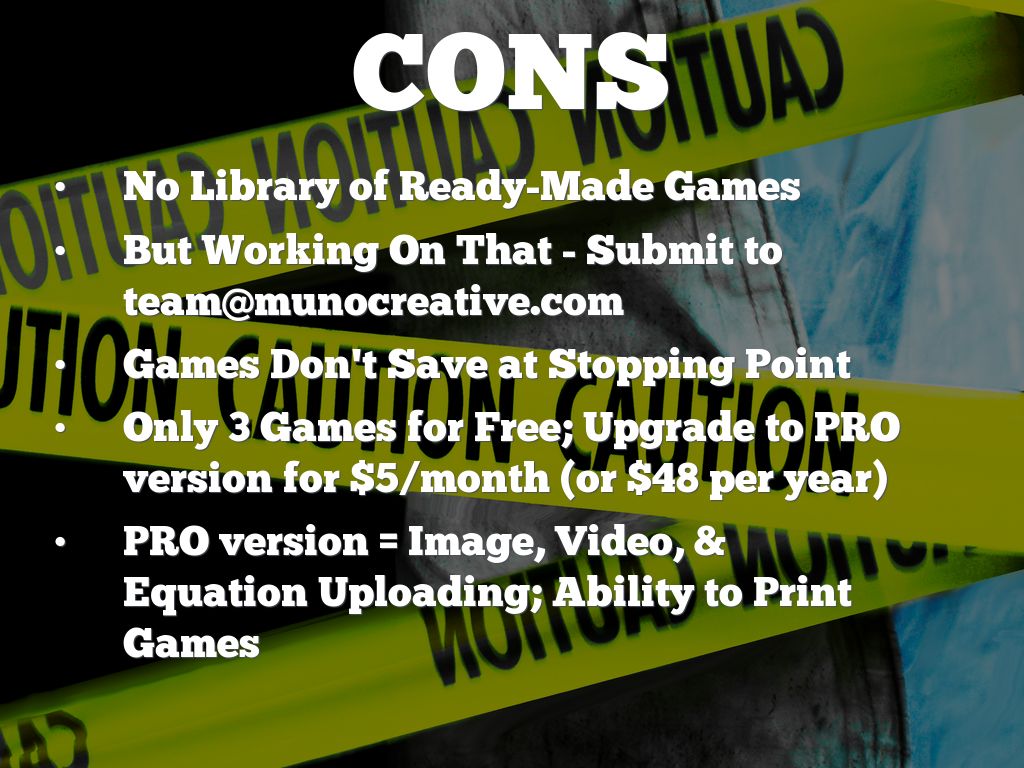 PRO version = Image, Video, & Equation Uploading; Ability to Print Games