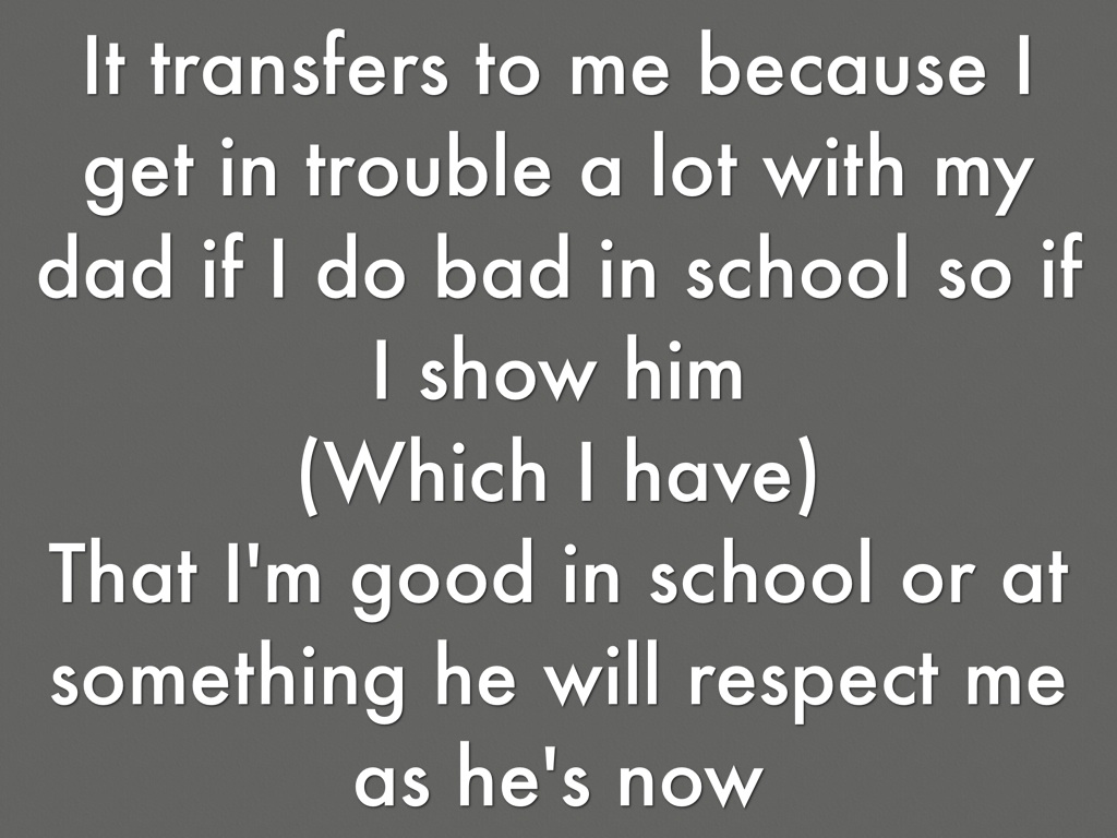 It transfers to me because I get in trouble a lot with my dad if I do bad in school so if I show him (Which I have)