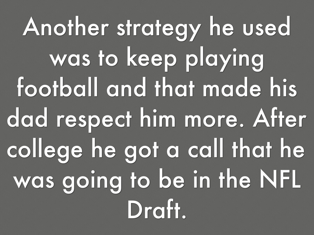 Another strategy he used was to keep playing football and that made his dad respect him more. After college he got a call that he was going to be in the NFL Draft.
