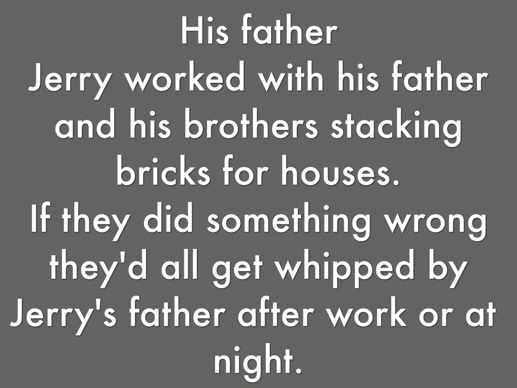 Jerry worked with his father and his brothers stacking bricks for houses.