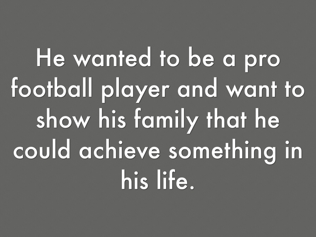 He wanted to be a pro football player and want to show his family that he could achieve something in his life.