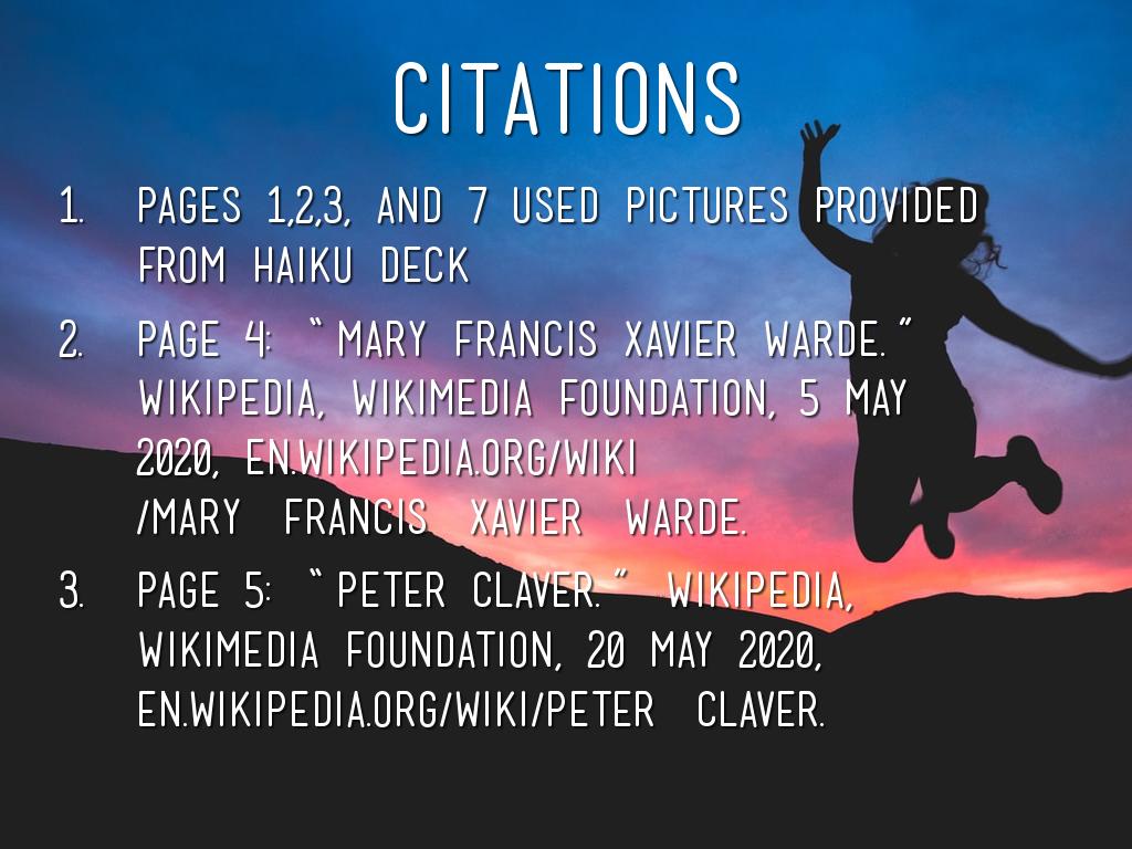 page 4: “Mary Francis Xavier Warde.” Wikipedia, Wikimedia Foundation, 5 May 2020,