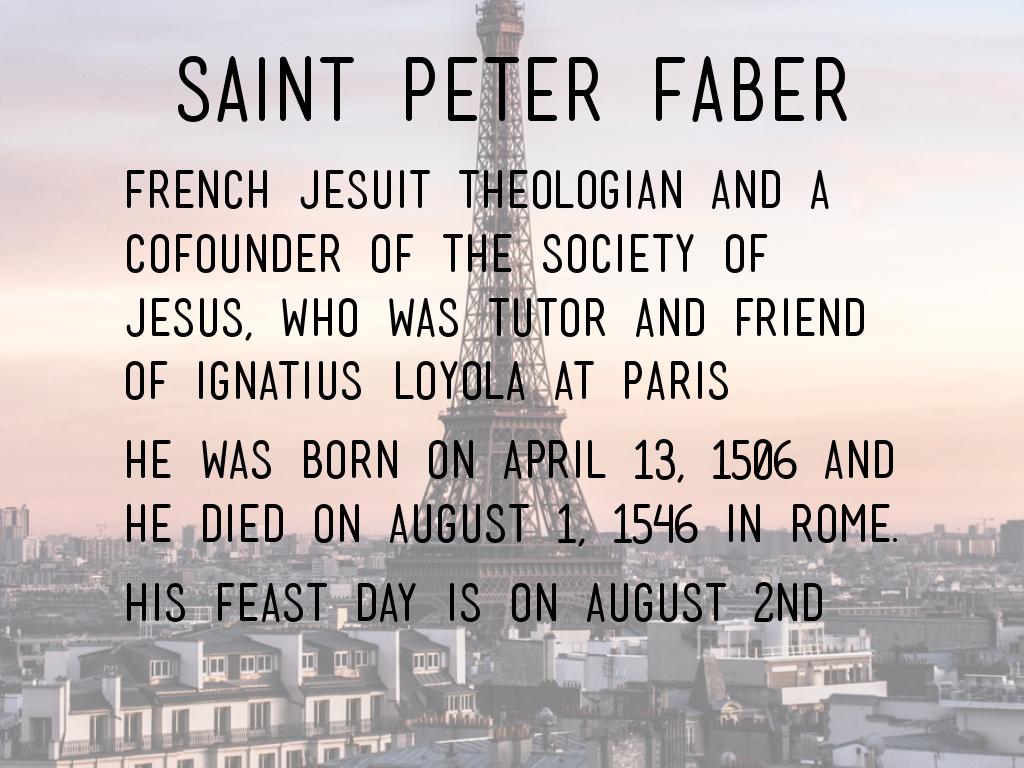French jesuit theologian and a cofounder of the society of Jesus, who was tutor and friend of Ignatius Loyola at Paris