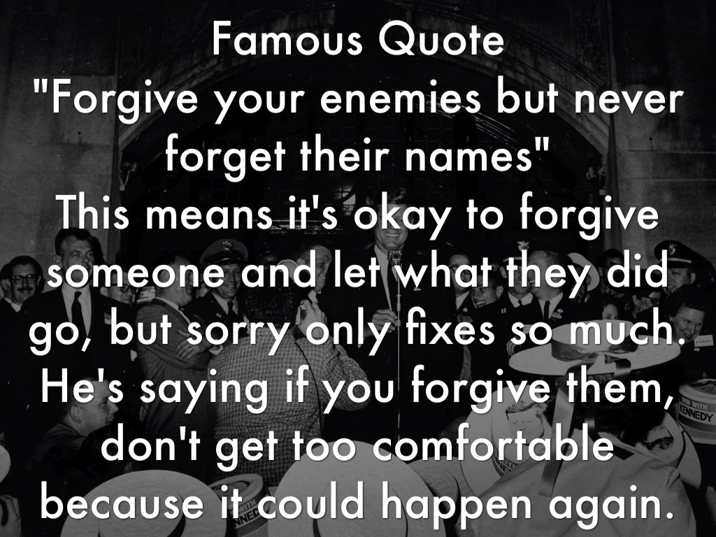 This means it's okay to forgive someone and let what they did go, but sorry only fixes so much. He's saying if you forgive them, don't get too comfortable because it could happen again.