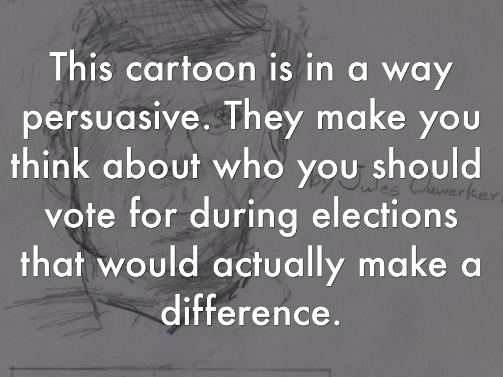 This cartoon is in a way persuasive. They make you think about who you should vote for during elections that would actually make a difference.