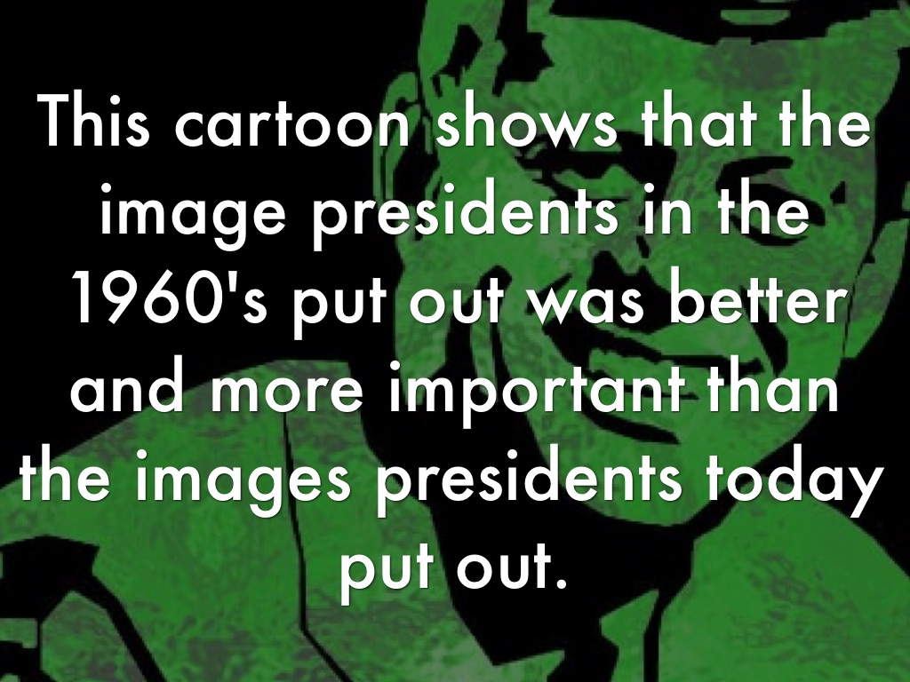 This cartoon shows that the image presidents in the 1960's put out was better and more important than the images presidents today put out.