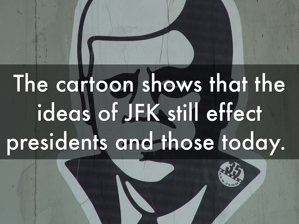 The cartoon shows that the ideas of JFK still effect presidents and those today.