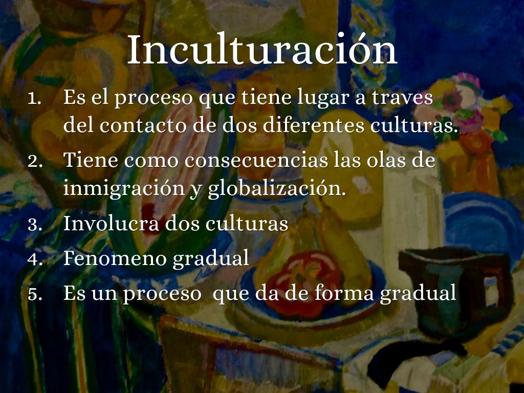 - Es el proceso que tiene lugar a traves del contacto de dos diferentes culturas.