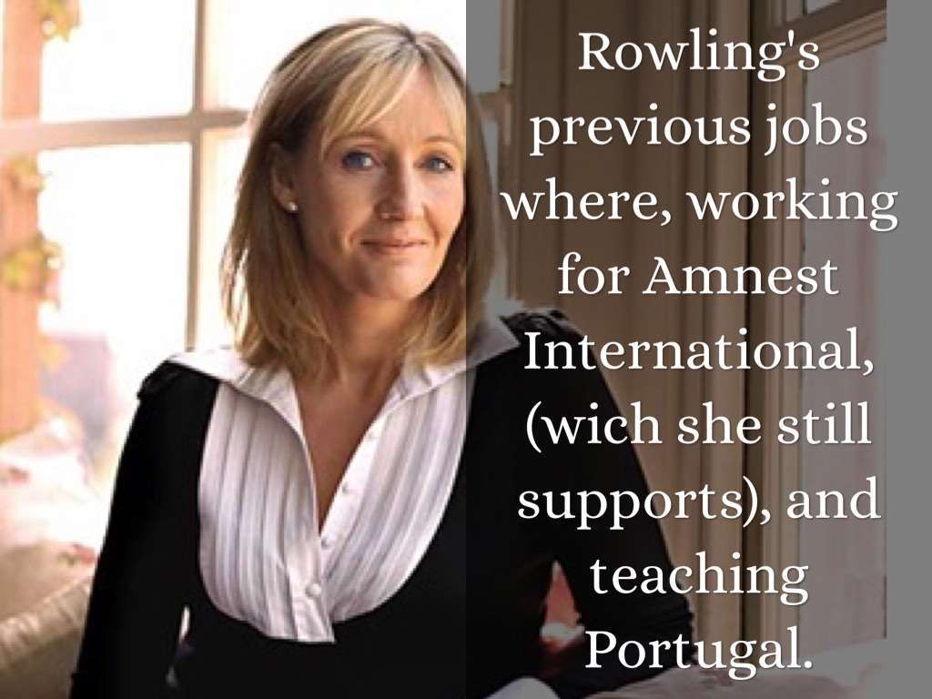 Rowling's previous jobs where, working for Amnest International, (wich she still supports), and teaching Portugal.