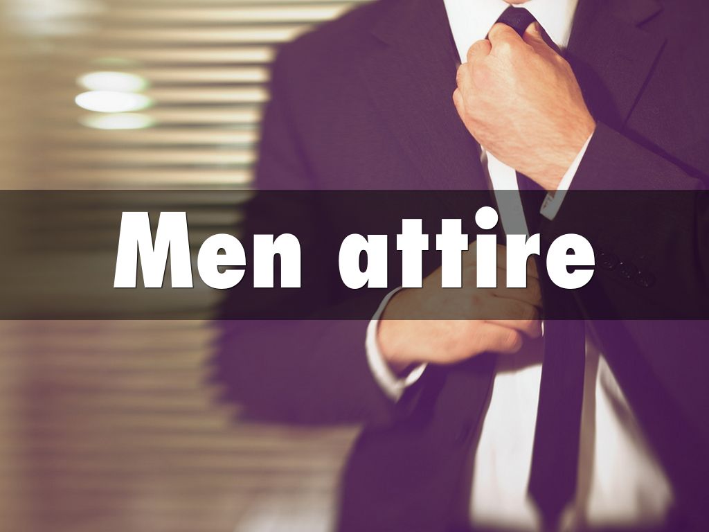 men should wear a suit with a tie and a collared shirt( majority of clothes should be on the darker side)