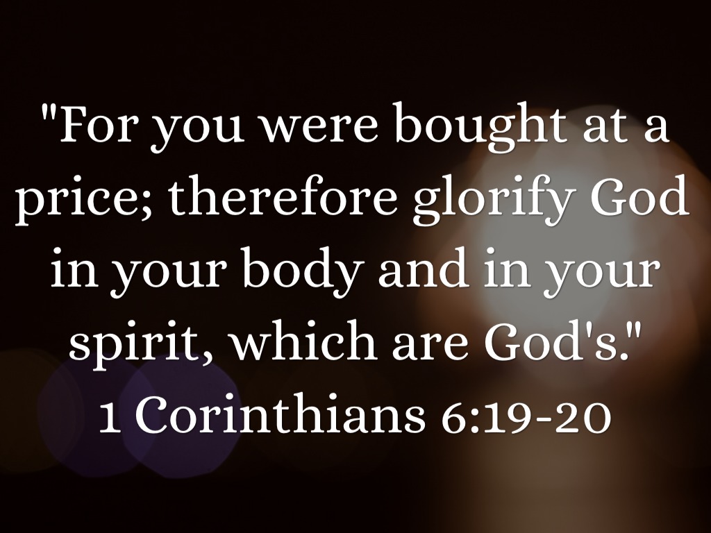 "For you were bought at a price; therefore glorify God in your body and in your spirit, which are God's."