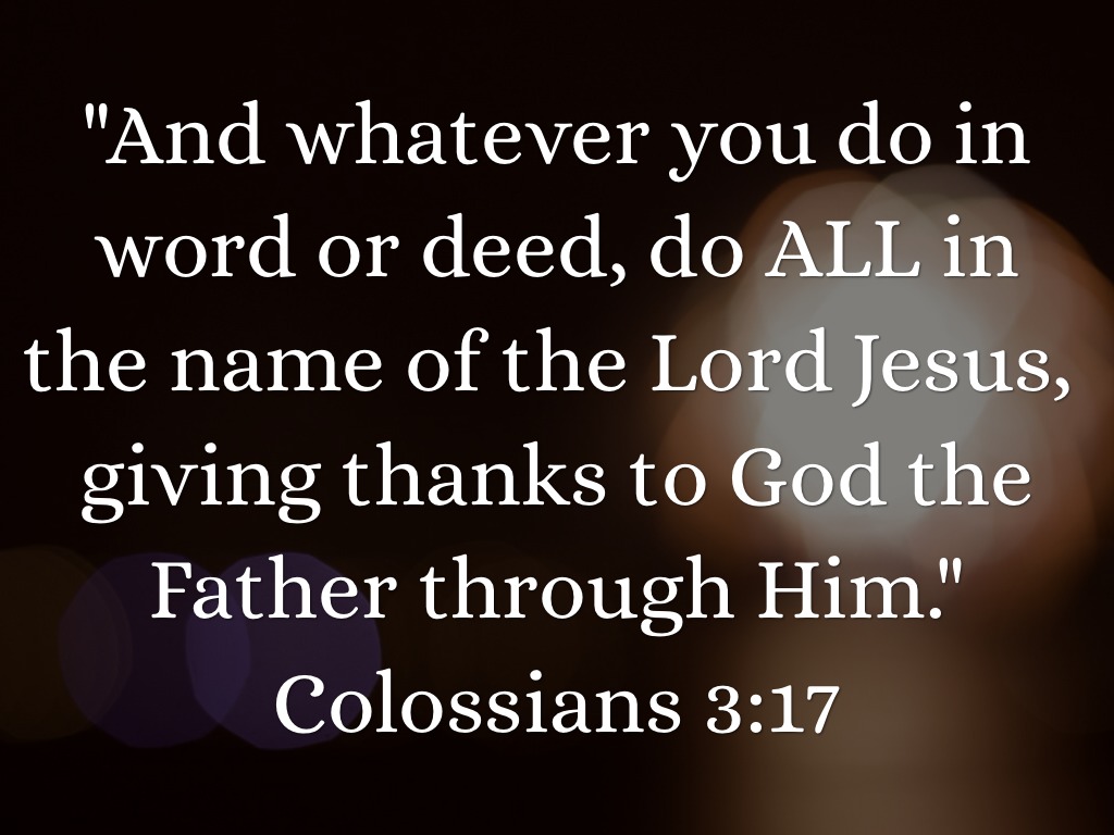 "And whatever you do in word or deed, do ALL in the name of the Lord Jesus, giving thanks to God the Father through Him."