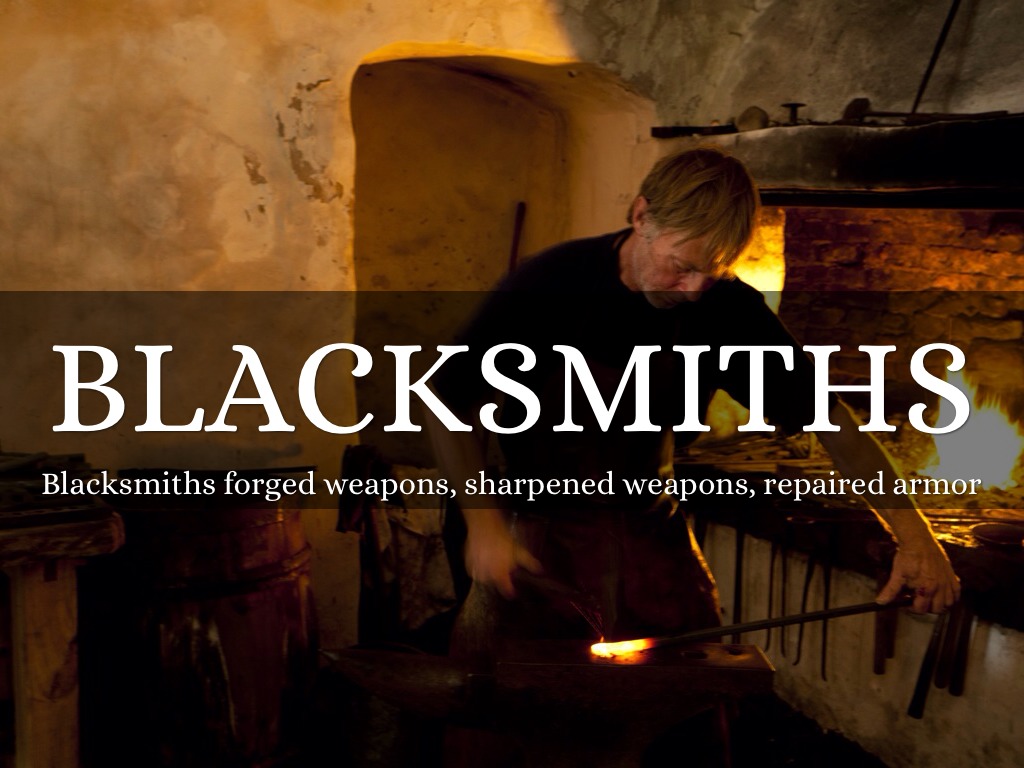 Blacksmiths forged weapons, sharpened weapons, repaired armor