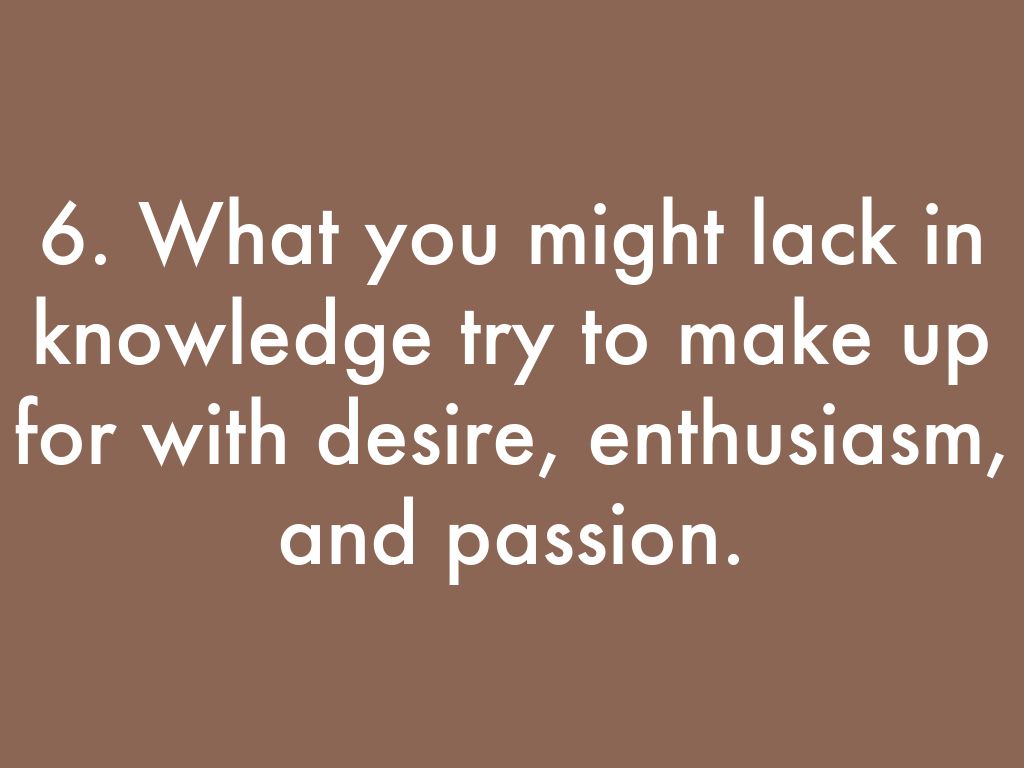6. What you might lack in knowledge try to make up for with desire, enthusiasm, and passion.