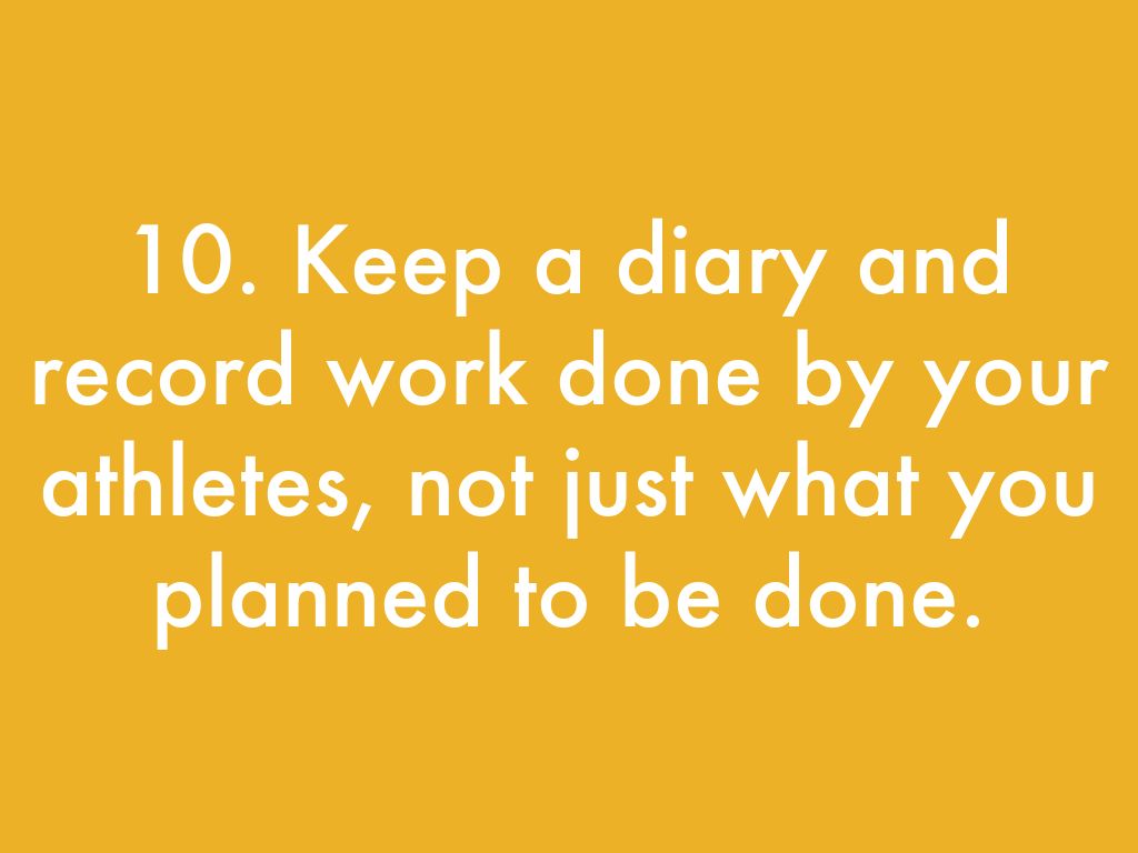 10. Keep a diary and record work done by your athletes, not just what you planned to be done.