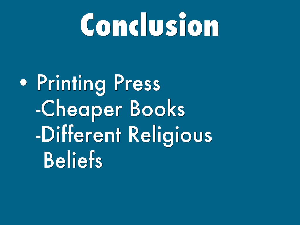 - Printing Press -Cheaper Books -Different Religious Beliefs