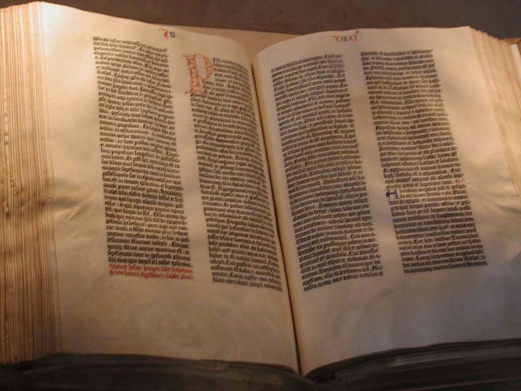 This is Gutenbergs bible also known as the 42 line bible. It is the first thing Gutenberg made with the printing press. This bible's pages contain two columns of 42 lines. These copies were made around 1452-1455. It is the oldest book made with the movable type technique(Harrley).