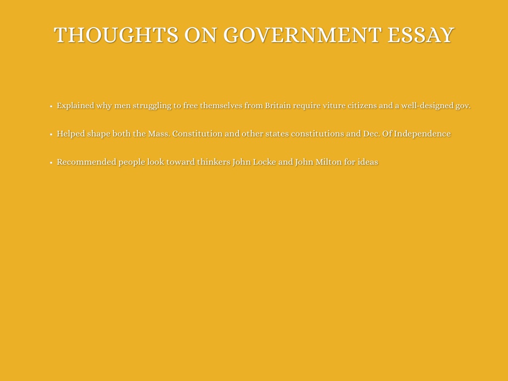 Helped shape both the Mass. Constitution and other states constitutions and Dec. Of Independence