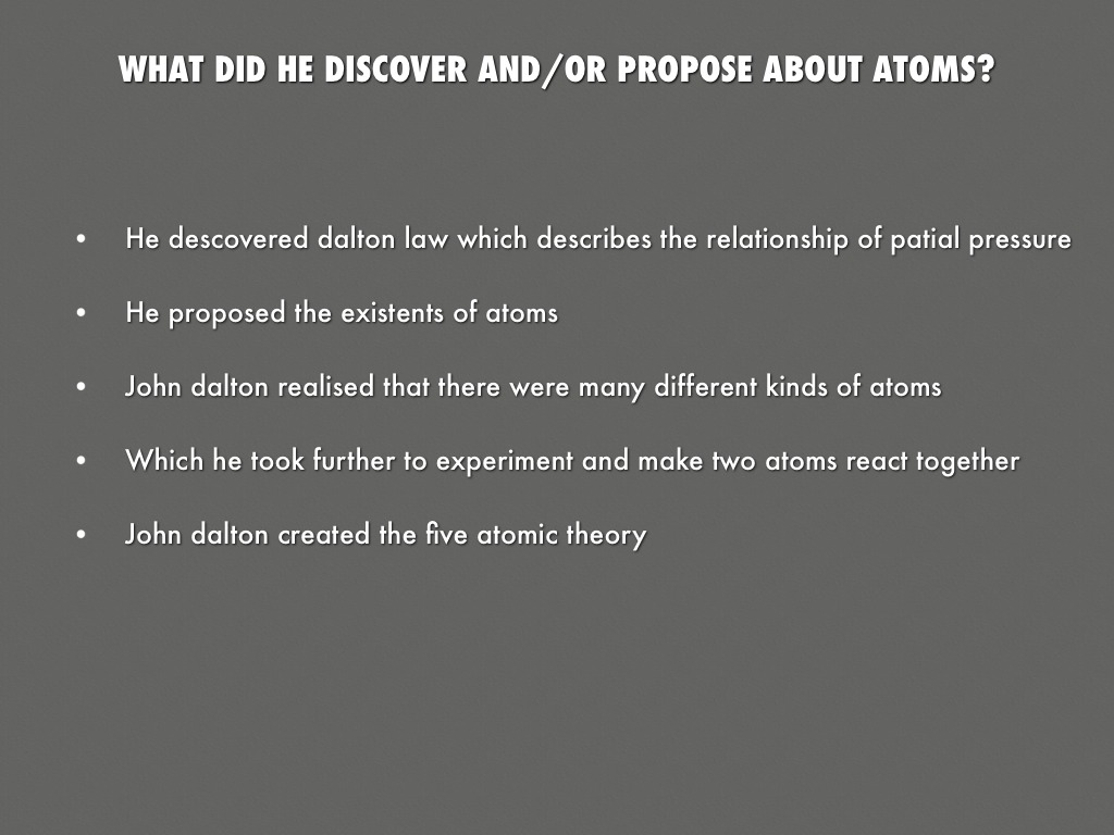 WHAT DID HE DISCOVER AND/OR PROPOSE ABOUT ATOMS?