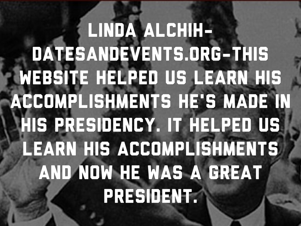 LINDA Alchih- datesandevents.org-This website helped us learn his accomplishments he's made in his presidency. It helped us learn his accomplishments and now he was a great president.