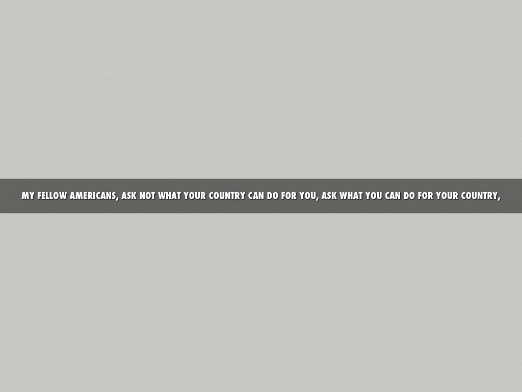 MY FELLOW AMERICANS, ASK NOT WHAT YOUR COUNTRY CAN DO FOR YOU, ASK WHAT YOU CAN DO FOR YOUR COUNTRY,