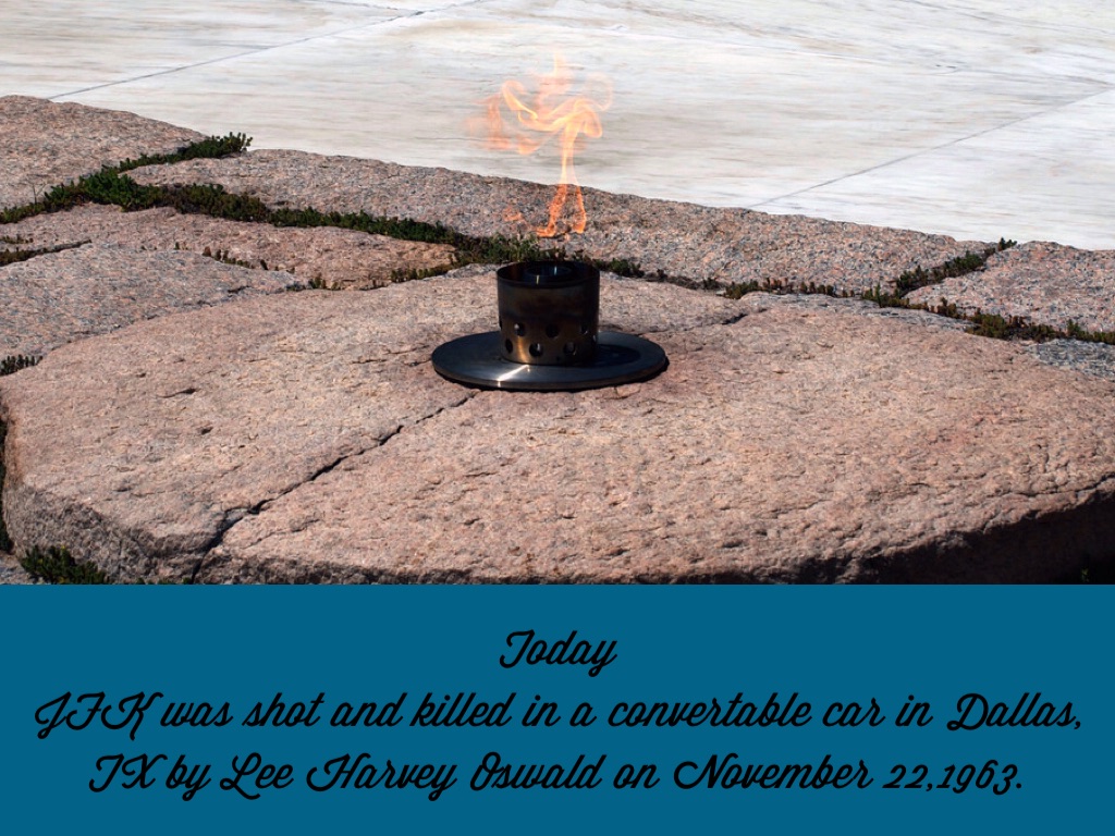 JFK was shot and killed in a convertable car in Dallas, TX by Lee Harvey Oswald on November 22,1963.