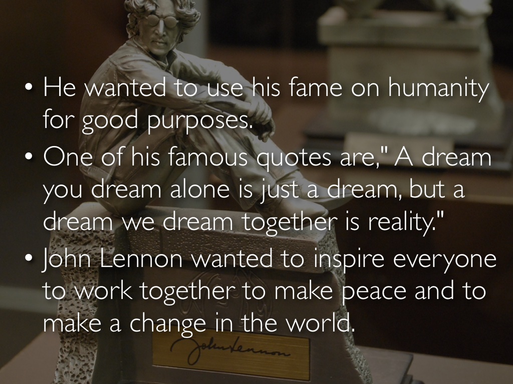 John Lennon wanted to inspire everyone to work together to make peace and to make a change in the world.
