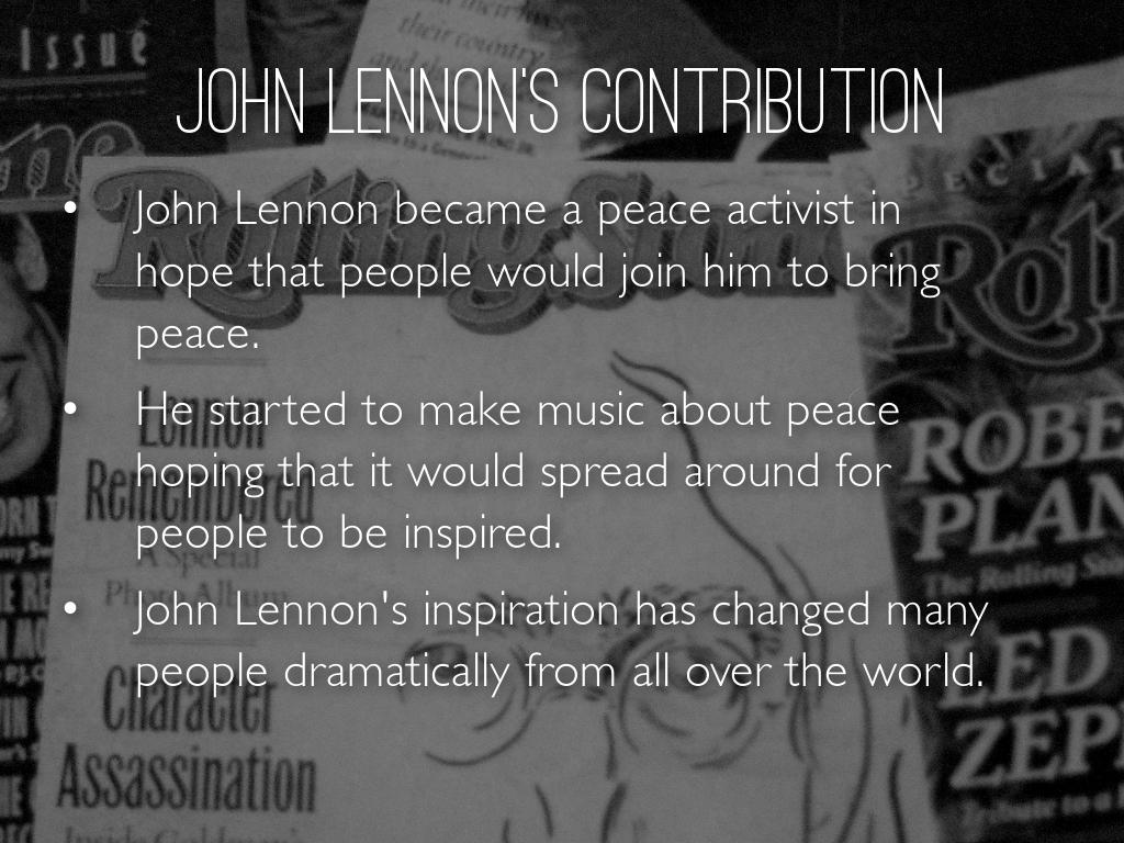 John Lennon's inspiration has changed many people dramatically from all over the world.