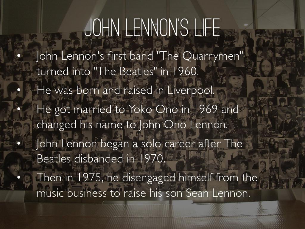 John Lennon began a solo career after The Beatles disbanded in 1970.