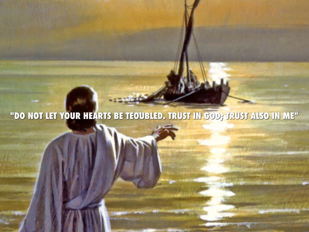 "DO NOT LET YOUR HEARTS BE TEOUBLED. TRUST IN GOD; TRUST ALSO IN ME"