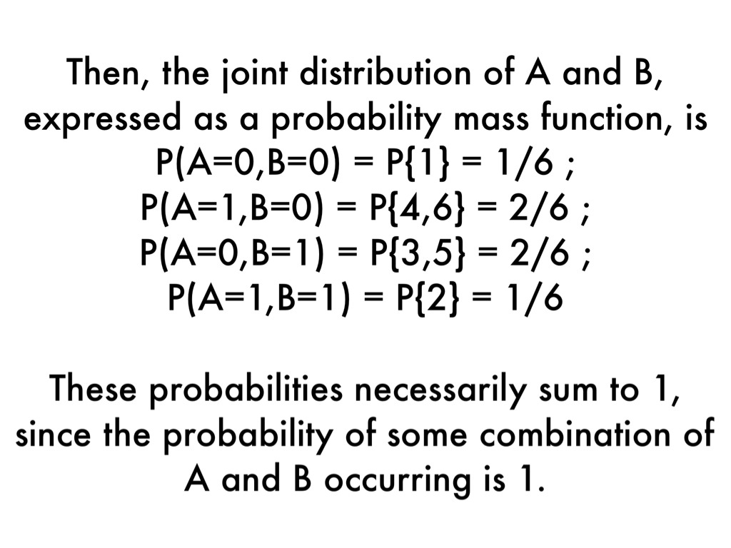 Then, the joint distribution of A and B, expressed as a probability mass function, is