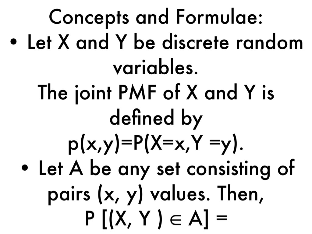 The joint PMF of X and Y is defined by