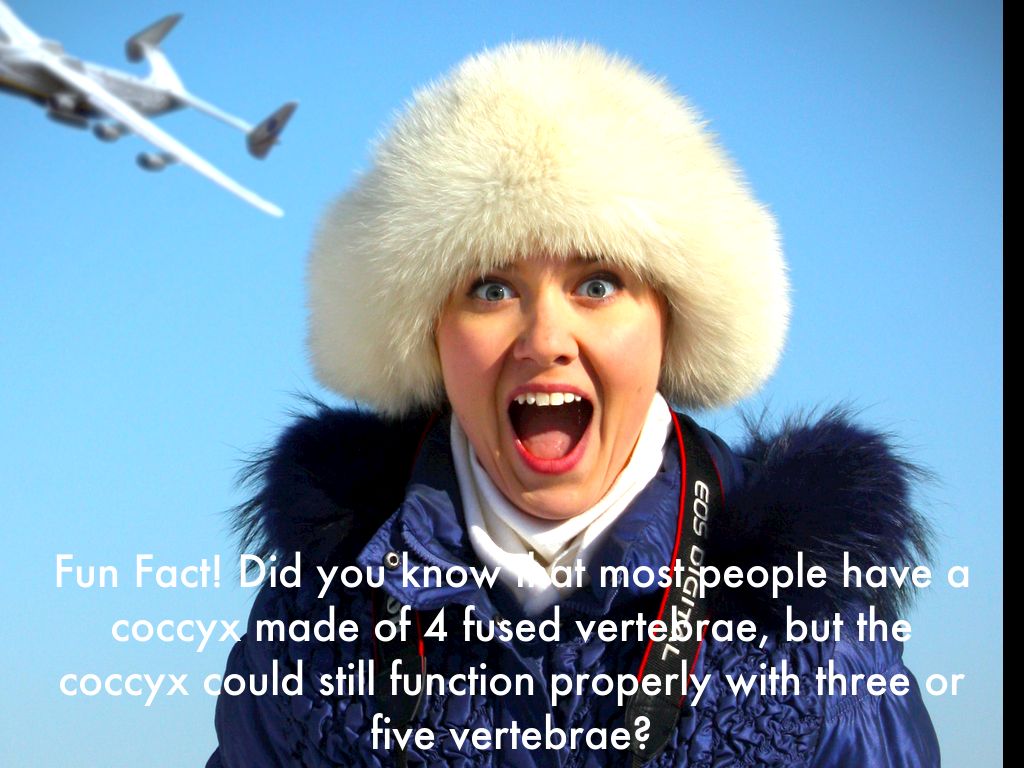 Fun Fact! Did you know that most people have a coccyx made of 4 fused vertebrae, but the coccyx could still function properly with three or five vertebrae?