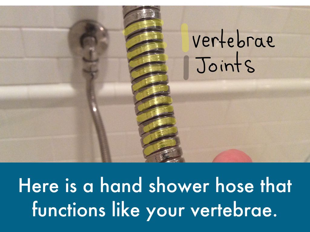 One man made object that functions like your vertebrae is a hand shower hose. Another is a plumbing snake.