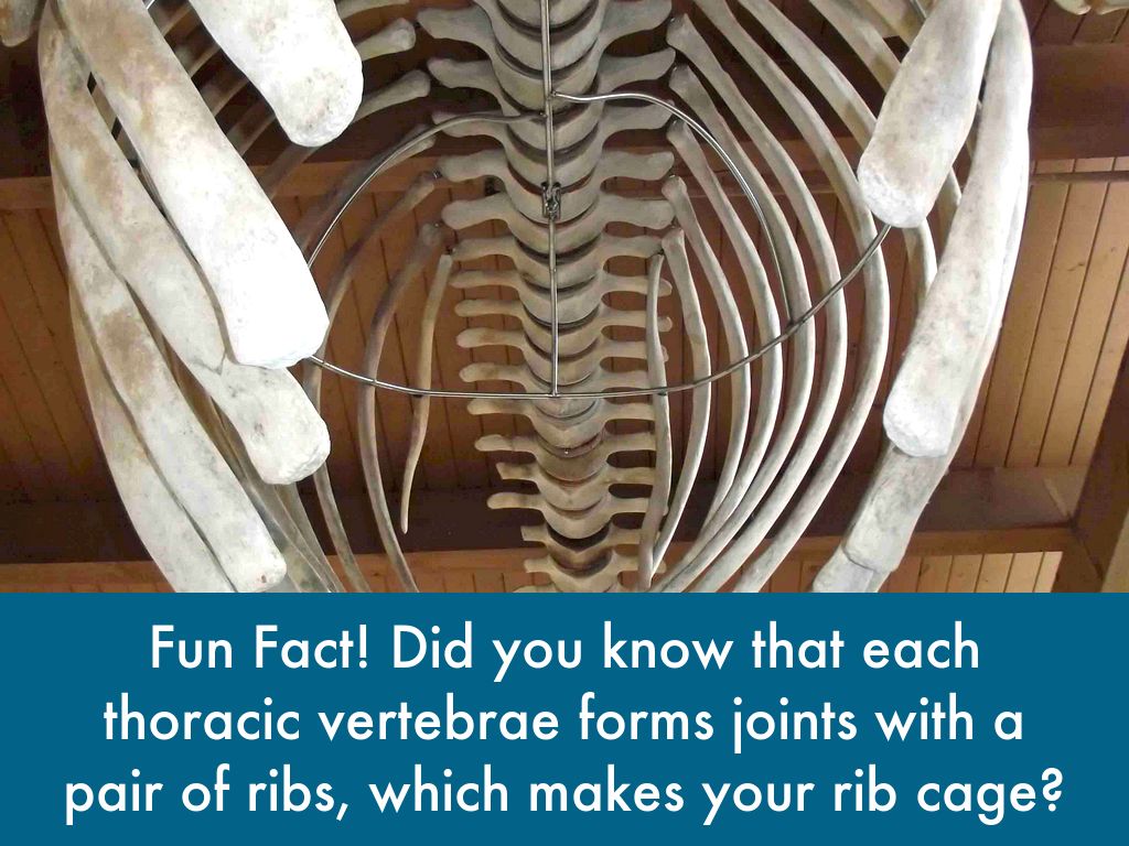 Fun Fact! Did you know that each thoracic vertebrae forms joints with a pair of ribs, which makes your rib cage?