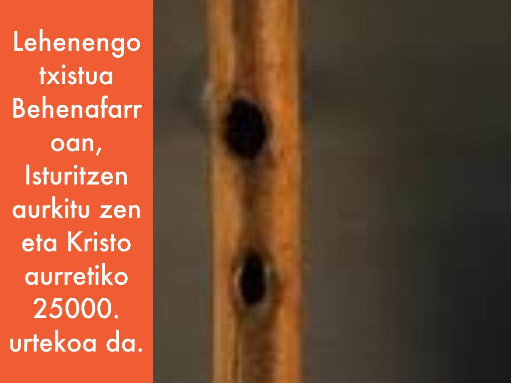 Lehenengo txistua Behenafarroan, Isturitzen aurkitu zen eta Kristo aurretiko 25000. urtekoa da.
