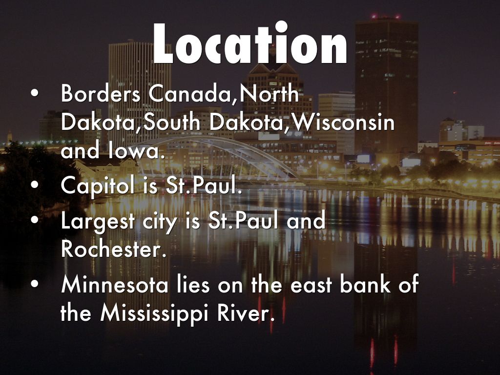 Minnesota lies on the east bank of the Mississippi River.