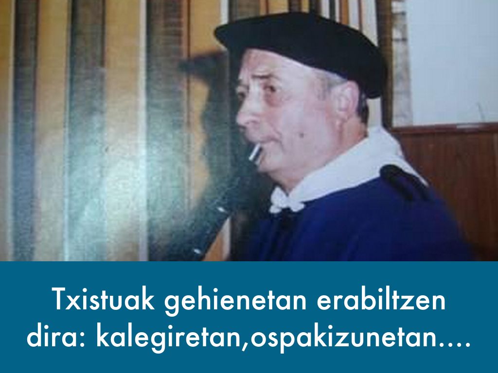 Txistuak gehienetan erabiltzen dira: kalegiretan,ospakizunetan....