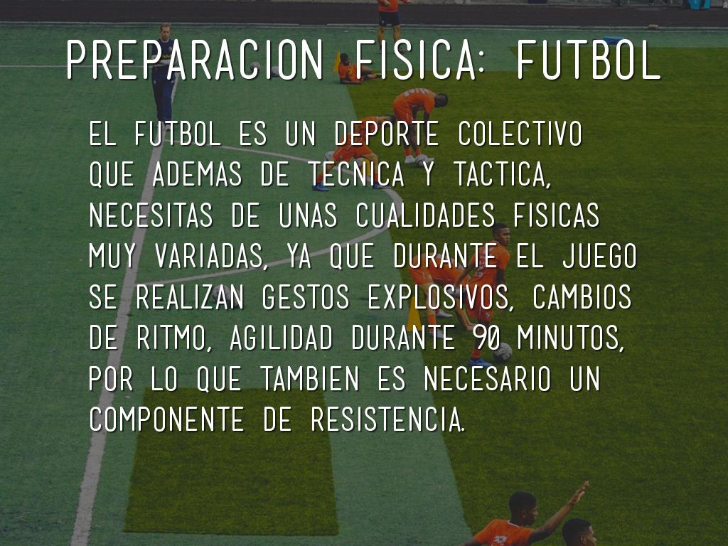 el futbol es un deporte colectivo que ademas de tecnica y tactica, necesitas de unas cualidades fisicas muy variadas, ya que durante el juego se realizan gestos explosivos, cambios de ritmo, agilidad durante 90 minutos, por lo que tambien es necesario un componente de resistencia.