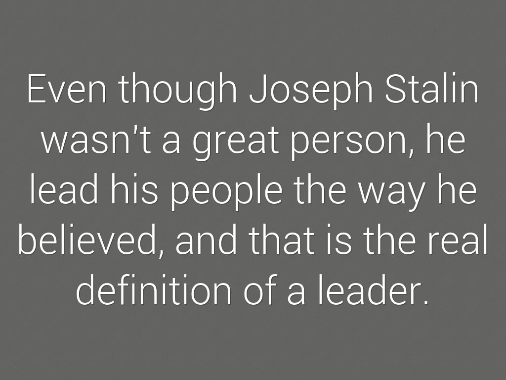 Even though Joseph Stalin wasn't a great person, he lead his people the way he believed, and that is the real definition of a leader.