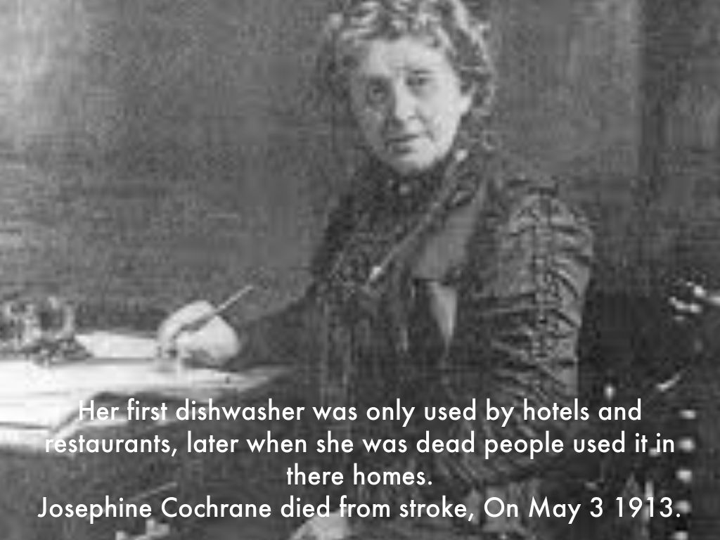 Her first dishwasher was only used by hotels and restaurants, later when she was dead people used it in there homes.