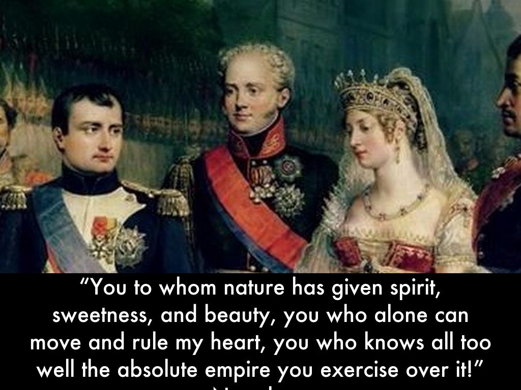 “You to whom nature has given spirit, sweetness, and beauty, you who alone can move and rule my heart, you who knows all too well the absolute empire you exercise over it!” Napoleon