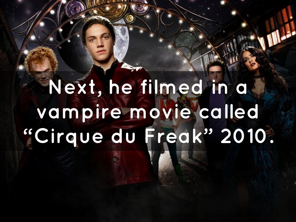 Next, he filmed in a vampire movie called “Cirque du Freak” 2010.
