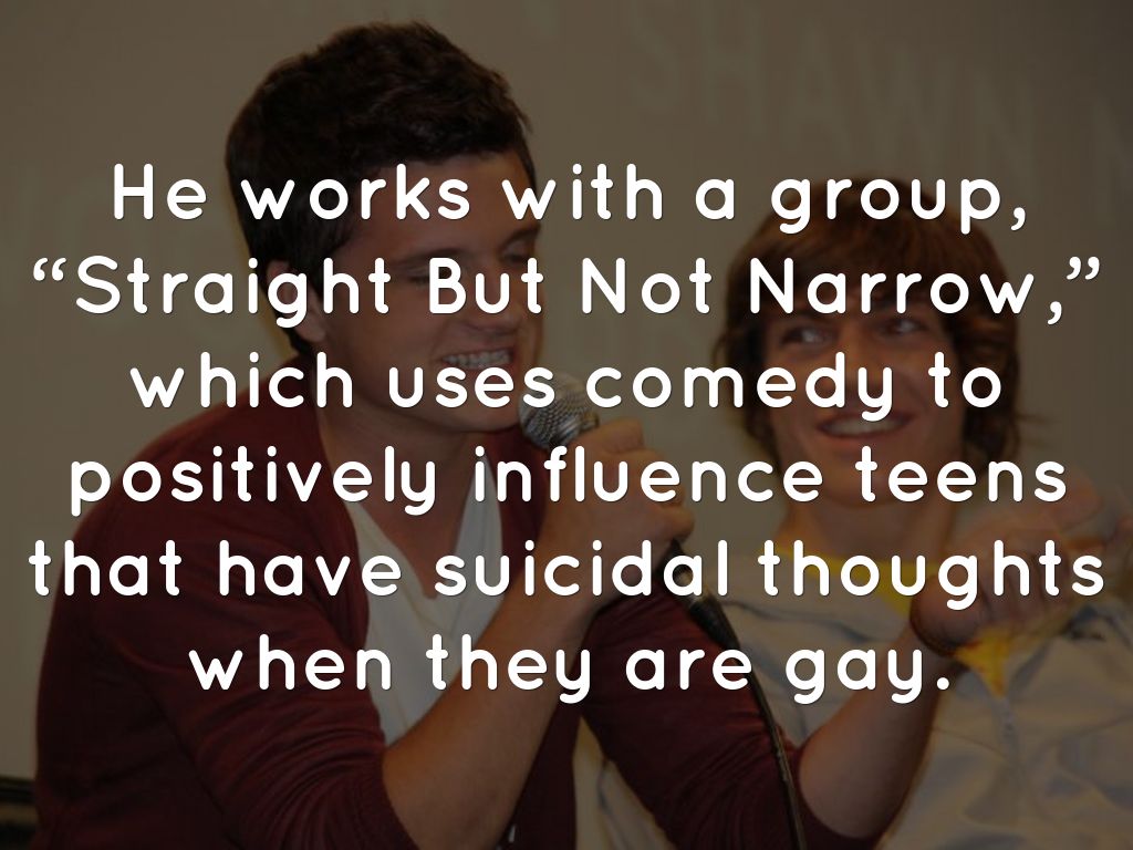 He works with a group, “Straight But Not Narrow,” which uses comedy to positively influence teens that have suicidal thoughts when they are gay.