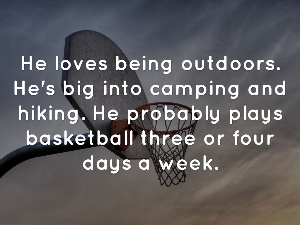 He loves being outdoors. He's big into camping and hiking. He probably plays basketball three or four days a week.