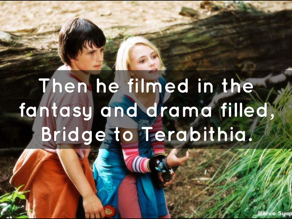 Then he filmed in the fantasy and drama filled, Bridge to Terabithia.